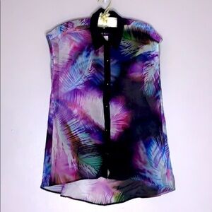Sandro Paris sleeveless palm print button front blouse collared medium new w tag