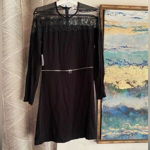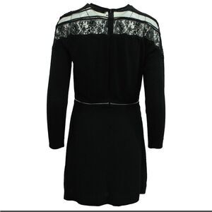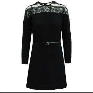 Sandro Paris Lace Long Sleeve Viscose Mini Dress Black Zipper Waist Sz Small