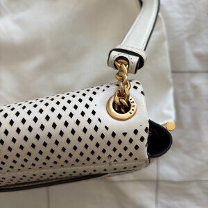 Sandro Pepita White Leather Perforated Shoulder Bag
