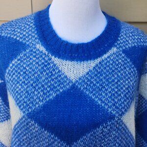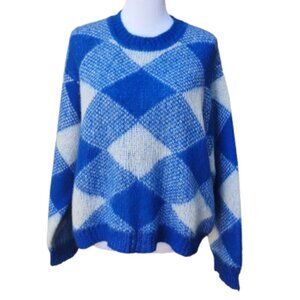 Sandro Plaid Crewneck Sweater Blue White Made in Italy