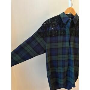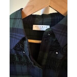Sandro Plaid Western Shirt with Bead Embellishment, Size 1