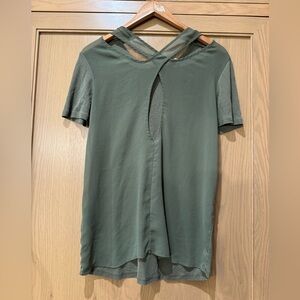 Sandro Pullover Olive Green Cross Back Tee / Sheer Back / Medium
