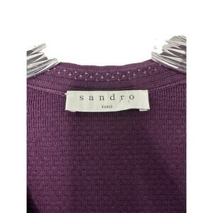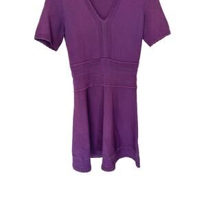 Sandro Purple Betsy V-Neck Stretch Open Knit Fit & Flare Mini Dress Medium