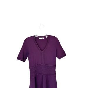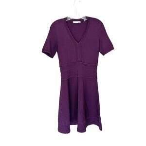 Sandro Paris Purple V-Neck Stretch Knit Mini Dress