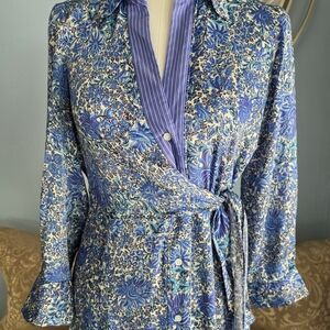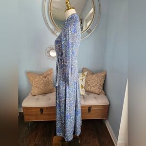 Sandro Purple and Blue Long Sleeve Wrap Sundress