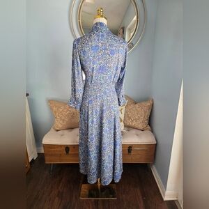 The Sandro dress is a stylish wrap sundress featuring a notched collar and bishop sleeves, perfect for casual or work settings. Its elegant tie front design in shades of purple and blue offers a flattering silhouette. The long sleeves and flowing fabric add a touch of sophistication to this versatile piece.