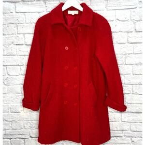 Sandro Red Textured Double Breasted Wool Blend Peacoat Size 10 Midi