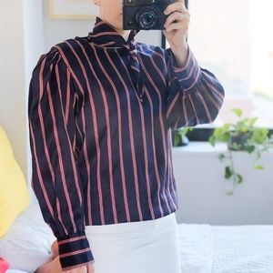 Well made, beautiful puffy sleeve tie front shirt from Sandro. Has a small zipper in the back and then a tie scarf that’s attached with a button. Please note the pilling in the back. Really cute piece.