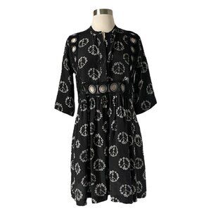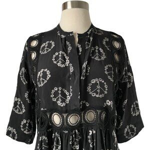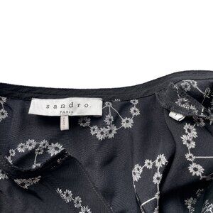 Sandro Rodic Dress Black Silk Embroidered Floral Cutout Mini Size Medium