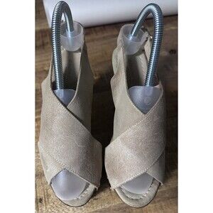 Sandro Rosi Anthropologie Tan/Beige Leather Wedge Adjustable Strap Size 41/9-10