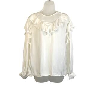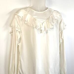 Sandro Ruffle Long Sleeve Blouse Snap Neck Cupro White Modest