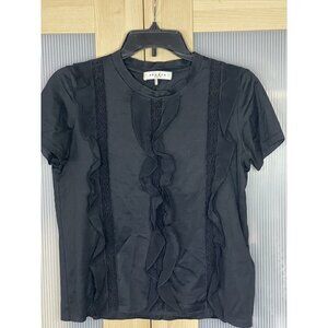 Sandro Ruffle Top Womens Size 1 Black Floral Lace Embroidered Small.