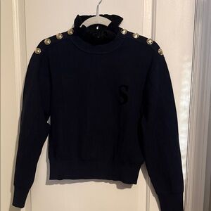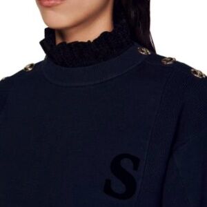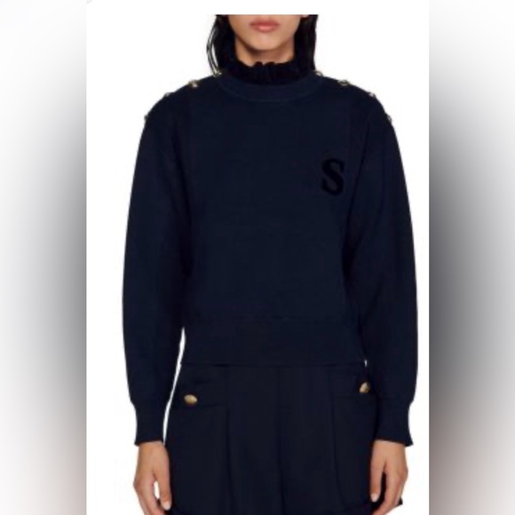 Classic black crewneck sweater designed for everyday comfort. Soft knit fabric with a subtle 'S' accent on the chest for minimalist style. Ribbed cuffs and hem provide a polished fit. Easy-to-style piece that pairs well with casual or dressed-up looks.by 1