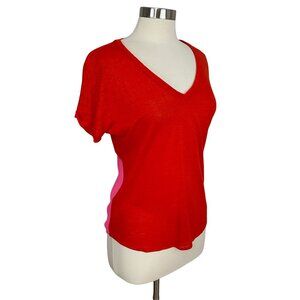 Sandro SMALL 1 Red Pink Linen Blend Color Block Lightweight Short Sleeve T-Shirt