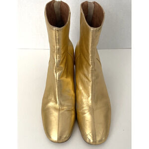 Sandro Sacha Ankle Boot Gold Leather Block Heel Round Toe Back Zip 40 9.5