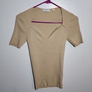 Sandro Safran Knit Top With Bustier Neckline In Sand Sweetheart Neck Pullover