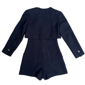 Sandro Seal Tweed Romper Black Long Sleeve Button Pockets V Neck 36 4 S