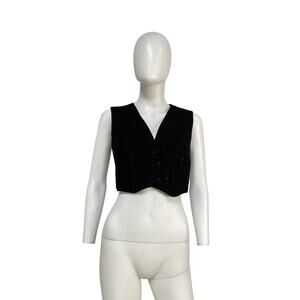 Sandro Sequin Black Viscose Cropped Jacket Vest Size S - NWT