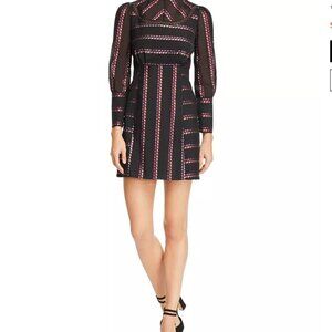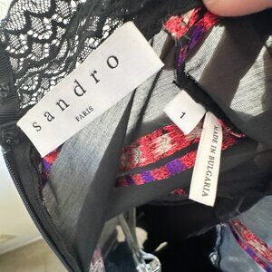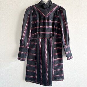 Sandro Sibel Floral Jacquard Mini Dress Lace Mock Neck Metallic Size 1 Small