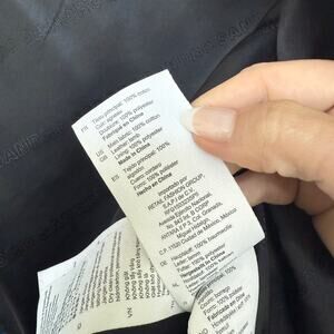 Sandro Sierra Denim Jacket. Women's FR 40 = US 8 / Medium. Features brown leather trim collar, gold colored hardware front button closures, long sleeves, two flap pockets at waist, lined, slightly cropped length. 100% cotton denim. Small flaw on neck. Retail $520.