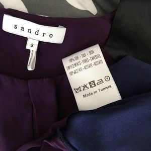 100% Silk with Acetate black panels (not leather). Purchased in Paris at Sandro boutique in Le Marais. Love this with jeans.