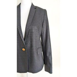 Sandro Single Breasted Pure Wool Blazer Navy Pinstripe Size 38