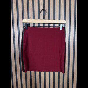 Sandro Skirt 1 / S Womens Red Black Leather Trim Pencil Mini Back 1/4 Zip