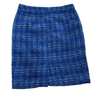 Sandro Skirt Womens 8 Blue Tweed Boucle Pencil Lined Back Slit Office Windowpane