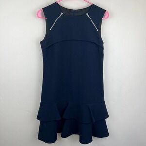 Sandro Sleeveless Ruffle Zipper Accent Blue Mini Dress Womens Size: 1 US: S