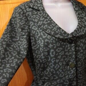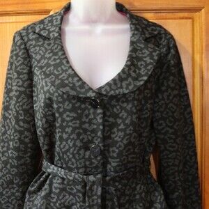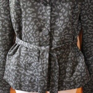 Sandro Soft Leopard Print Gray & Black Belted Blazer Jacket Small