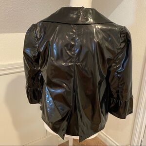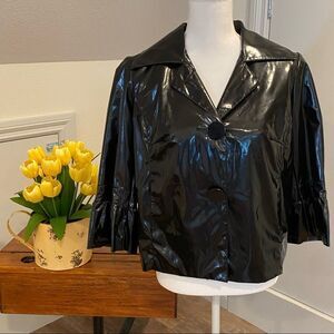 Sandro Sportswear Black Blazer Swing Bell Sleeve Vinyl Look Jacket Size Small