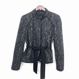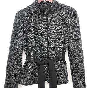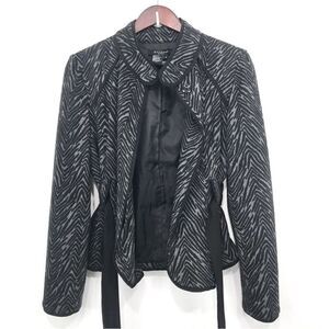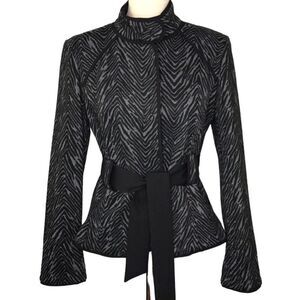 Sandro Sportswear Black Gray Animal Print Sash Waist Blazer Jacket
