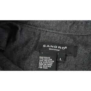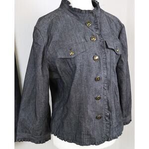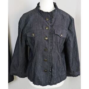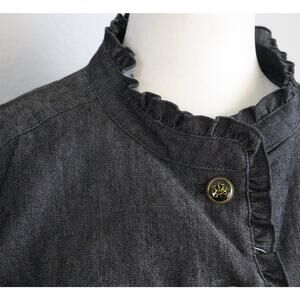 EXCELLENT CONDITION! Soft cotton blend! Ruffle neck and sleeve detail! Sandro Sportswear Denim Pant Suit Womens Large Dark Wash Ruffle Wide Leg Cotton