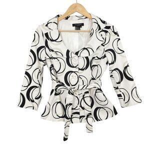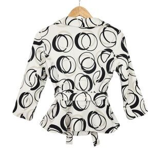 Sandro Sportswear Geometric Tie Belt Blazer Jacket in Black/White Size Small