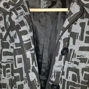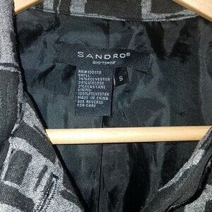 Sandro Sportswear Lined Jacket Belted Abstract Black Gray Print Button up Small