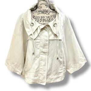 Sandro Sportswear Size XL Ivory Linen Cropped Jacket Lagenlook Boxy France
