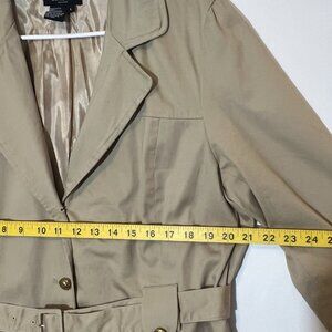 Sandro Sportswear Women Jacket Blazer Size Large Beige Cotton Stretch Belt Lining Long Sleeves Buttons Collared Pockets V-neck