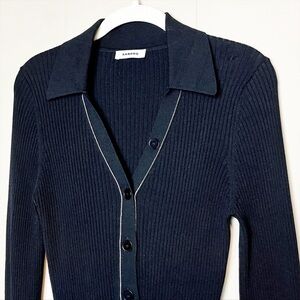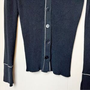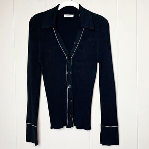 Sandro Spread Collar Ribbed Knit Cardigan Sweater 8 medium black button V neck