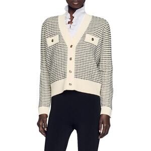Sandro 'Stripe' White Wool & Cashmere Cardigan Size 0: stripe wool & cashmere cardigan.