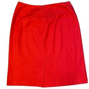 Sandro Studio Red Pencil Skirt Career Casual Wear Date Night EUC Size 6. Skirt has pleating in the front. Zipper in back and small slit in back.