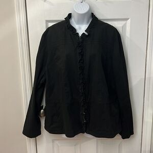 Sandro Studio cotton black ruffle zip up jacket size 3X I’m excellent condition.