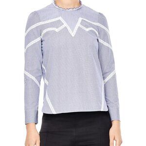 Sandro Suzan Lace Inset Cotton Top In Blue size 1 US size S