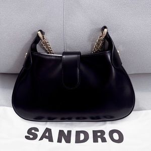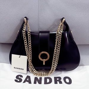 Sandro Sweet Janet Chain Leather Shoulder Bag In Black NWT