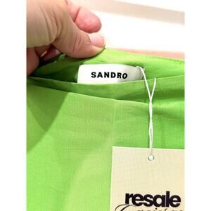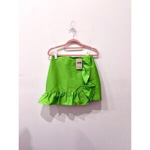 This Sandro mini skirt features a vibrant bright green hue with a high-waisted fit and flirty ruffle detail for a chic, feminine look. Perfect for parties, date nights, or adding a bold pop of color to your wardrobe.