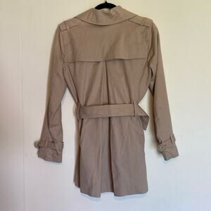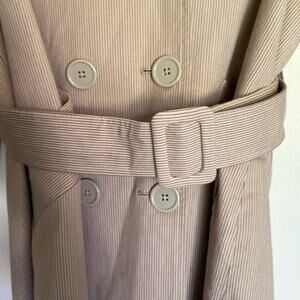 Sandro Tan Trench Coat Jacket Belted Double Breasted Striped Short