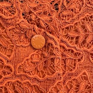 Chic terracotta/peach lace top with intricate floral design. Ideal for stylish outings.
