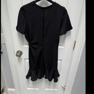 The perfect addition to your wardrobe for any special occasion. This Parisian brand brings you feminine, chic pieces that exude elegance and sophistication. Please note that size selections are European, so be sure to reference the size chart for US conversions. The Tessa Mini Dress in Noir features flutter sleeves, a ruched cutout waist, and a flounce hem for a flirty touch. Measuring approximately 37 inches from shoulder to hem, this dress also has a center back zipper closure for easy wear. Made from 100% polyester, this dress is dry clean only and imported for your convenience. Elevate your style with the Sandro Tessa Mini Dress and make a statement wherever you go.