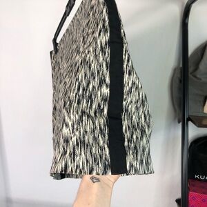 Exposed back zip. Black 100% silk trim on the sides. Size 2 or US M. Stretchy.
