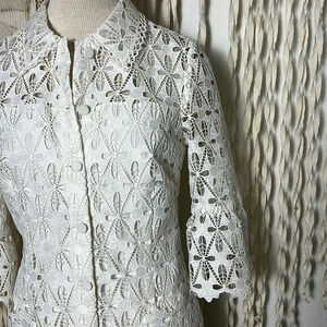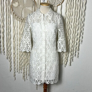 Sandro White Eyelet Button Down Mini Dress Size 36/Small