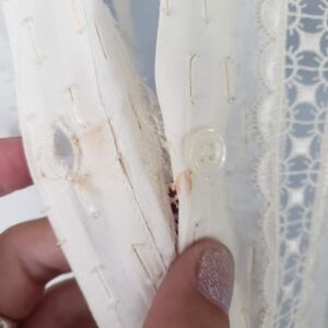 There is a small spot behind the top button - see photos. Cannot be seen when buttoned up.